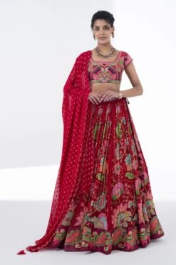 Step into elegance with this exquisite lehenga set. Intricate floral & geometric prints, delicate hand embroidery, paired with a blouse & scallop-edged dupatta. Elevate soirÃ’es or make a statement at elite gatherings. Timeless grace, redefined.