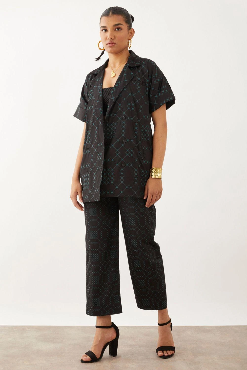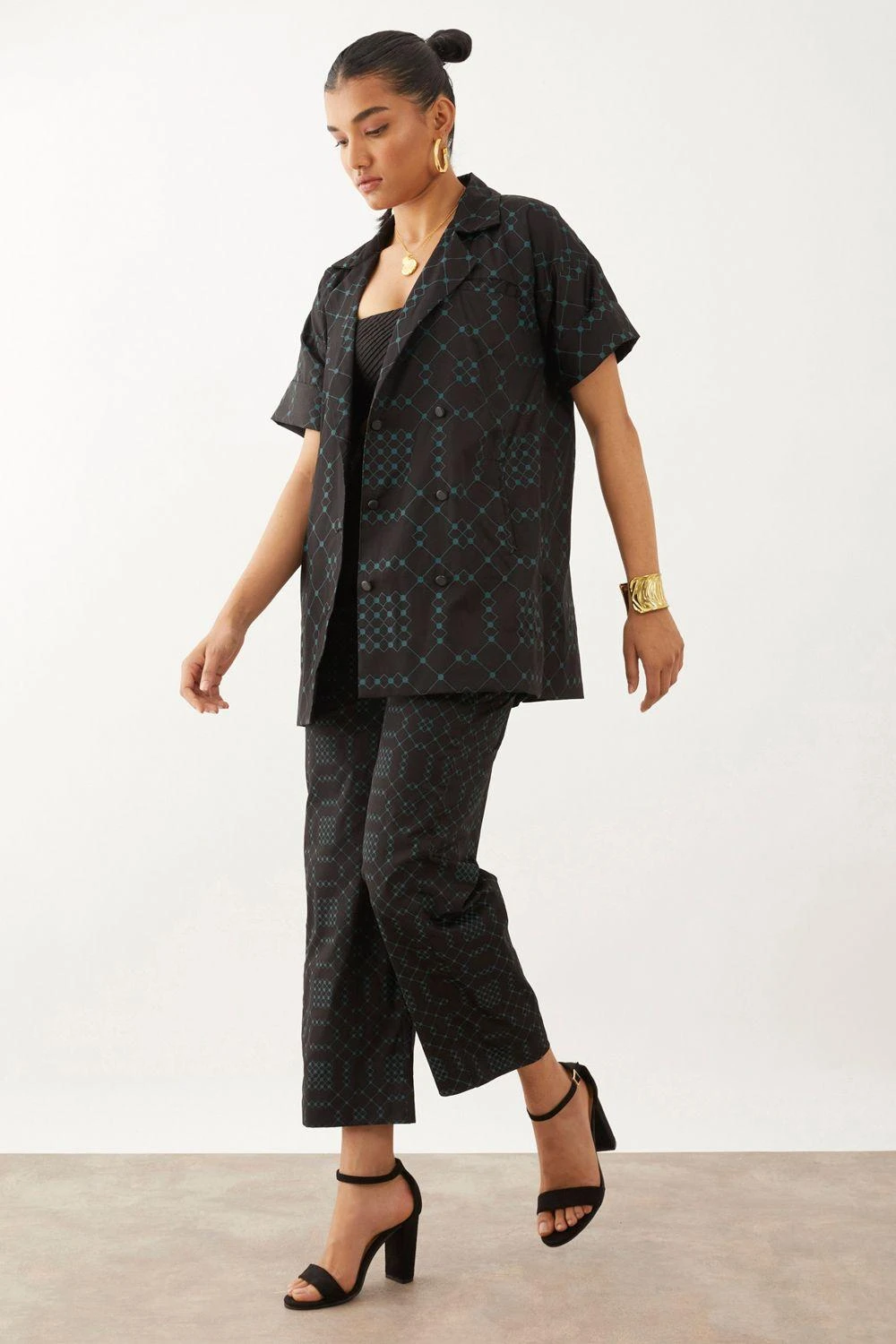 Elevate your style with this Double Breasted Jacket, featuring short rolled sleeves and welt pockets for a touch of sophistication. Paired impeccably with matching straight-leg pants, this set exudes modern charm and confident elegance.