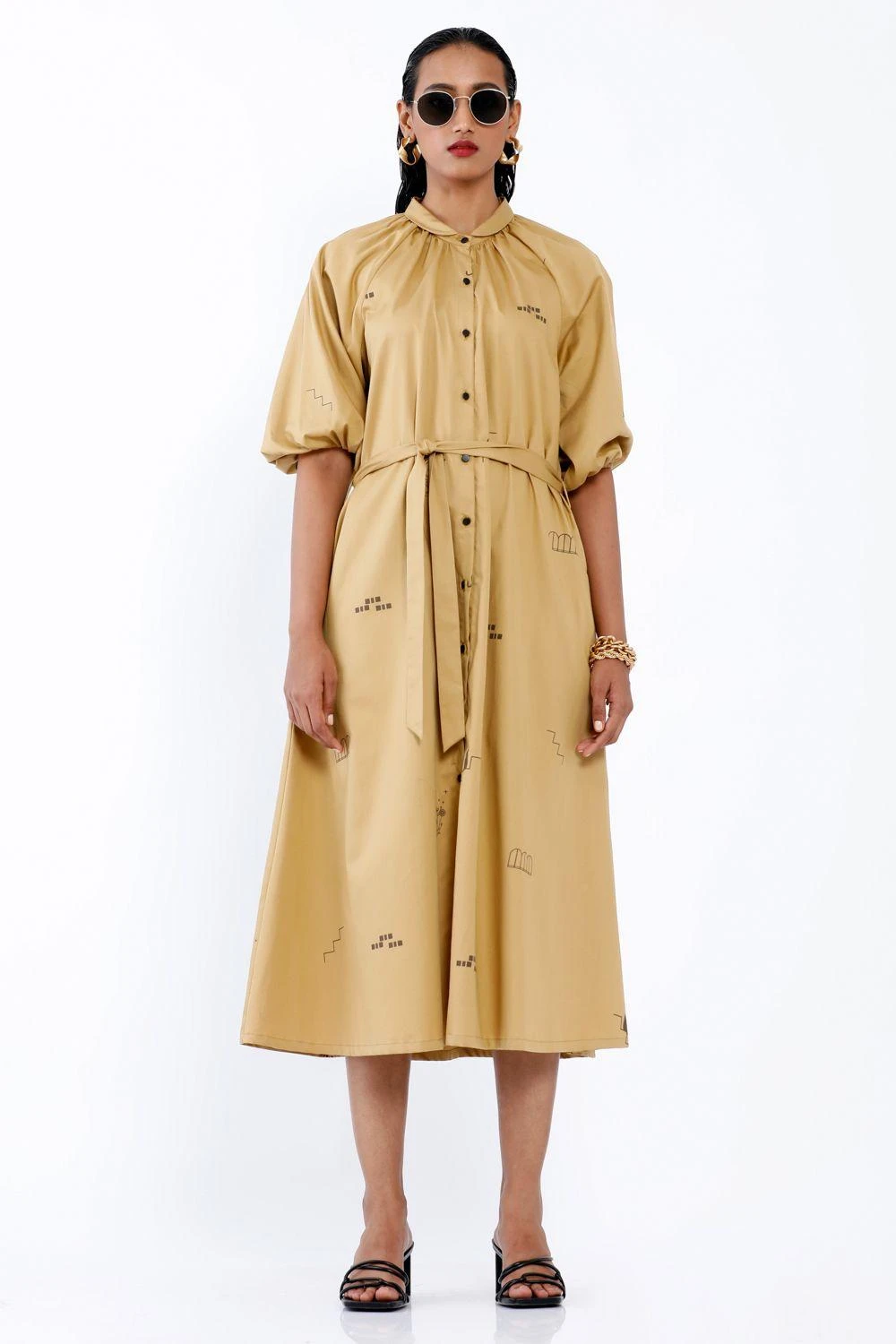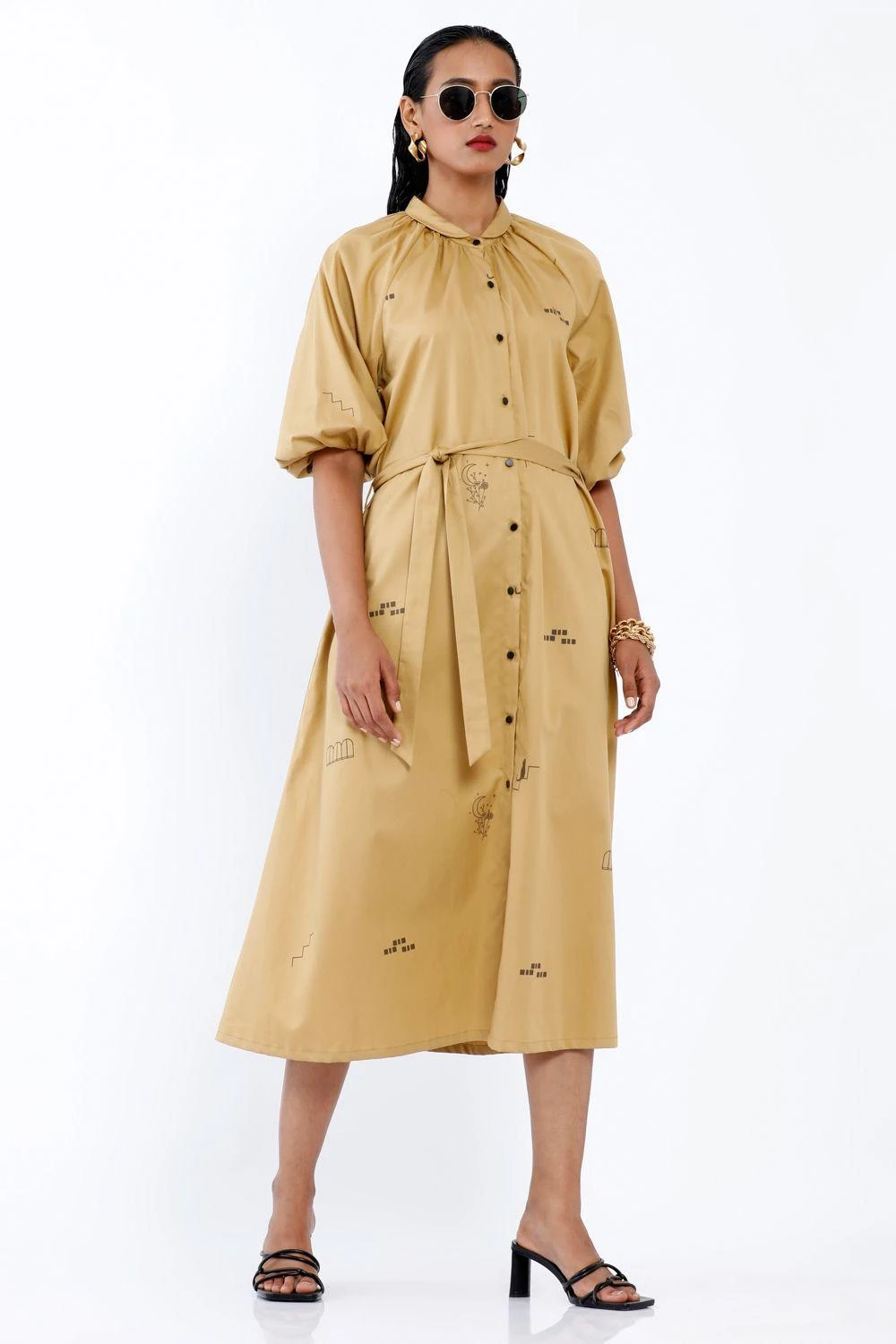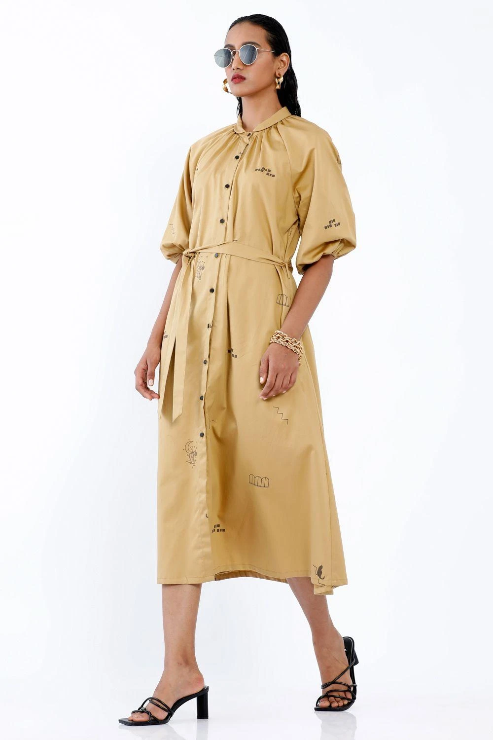 This printed dress is set in a premium cotton fabric. This dress comes with a tie up waist & voluminous sleeves. This stylish daytime dress is perfect for casual events.