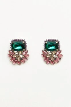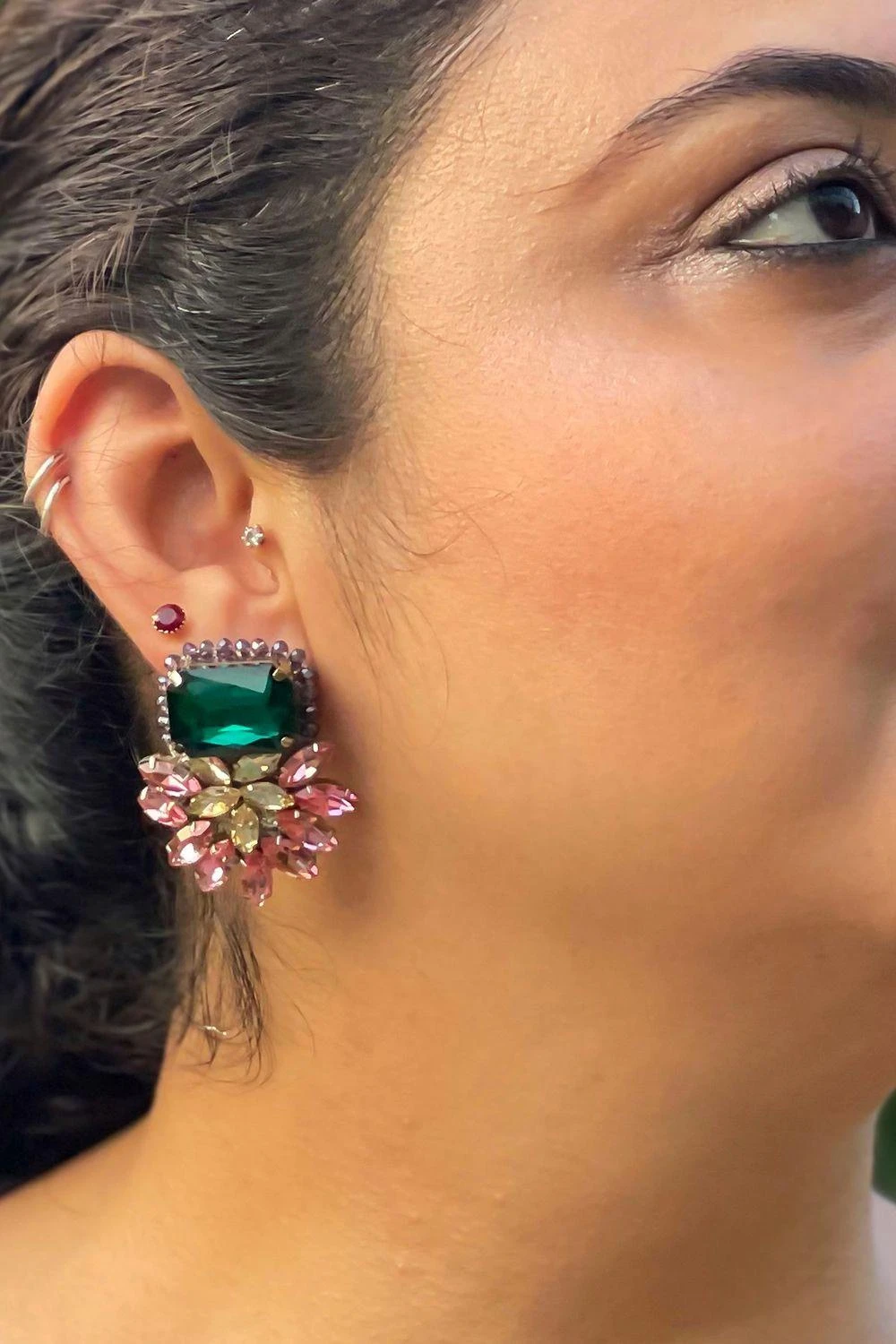 Elevate a minimal look with these square crystal statement earrings. They feature intricate petal and leaves embellishments in shades of green and pink. Style these with Indian or contemporary looks with equal ease.