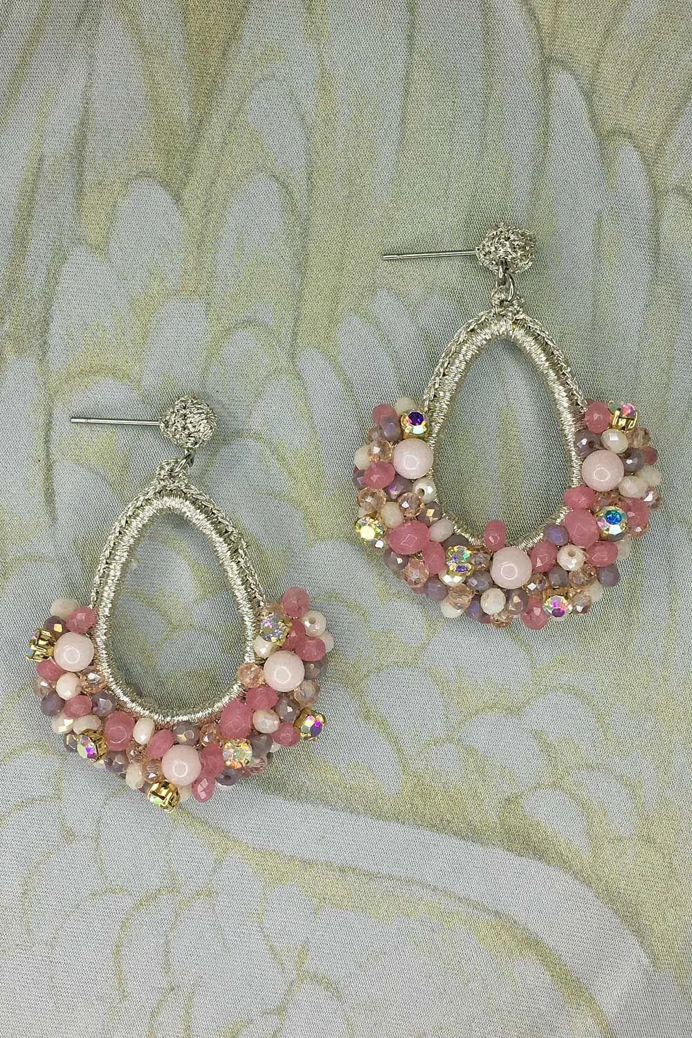 Indulge in the enchanting allure of these exquisite bead-encrusted oval dangler earrings, designed to captivate on special occasions. These earrings effortlessly elevate any evening or wedding ensemble, exuding elegance and sophistication.