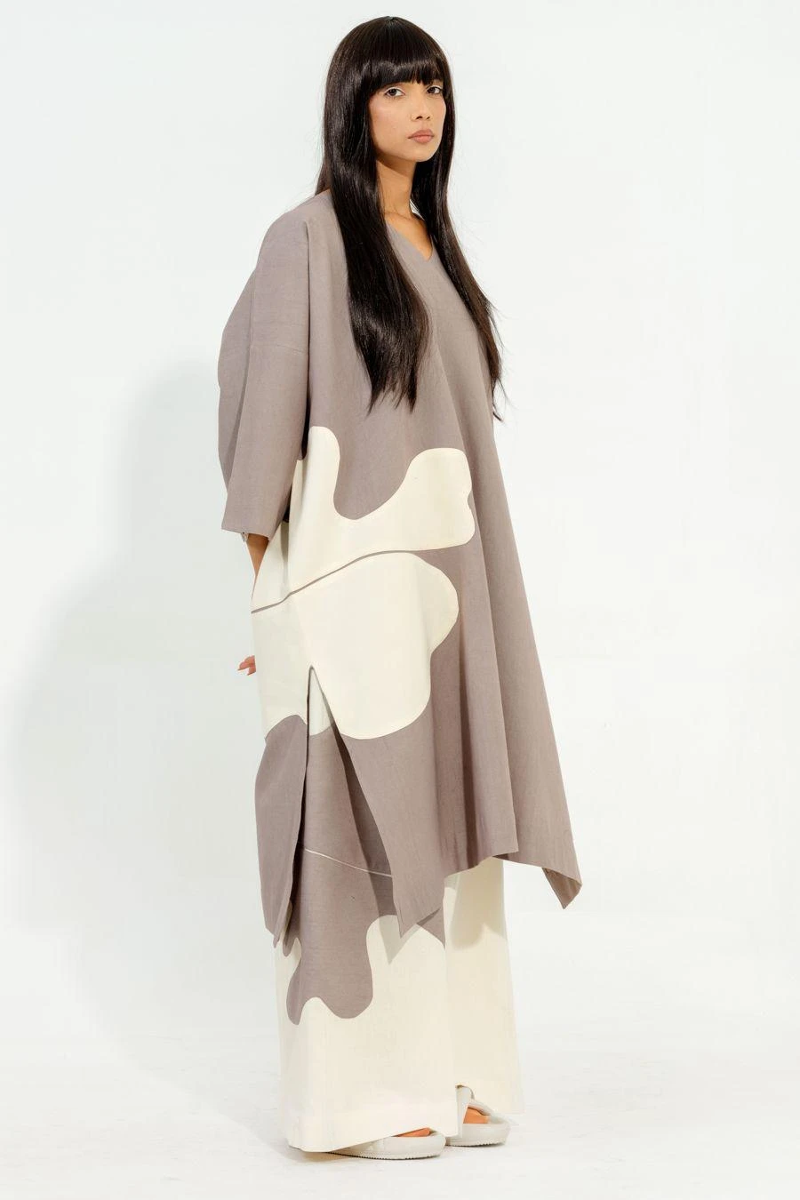Experience the perfect blend of comfort and style with these elongated pants featuring exquisite hand-sewn applique on one side. The relaxed fit and unique design add a touch of sophistication to your look.