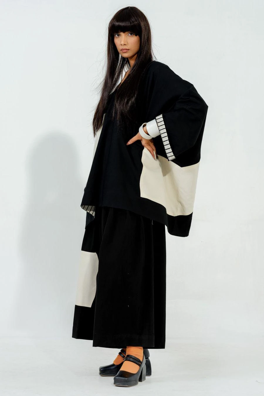 Step into style with these stunning flared pants. Crafted from high-quality fabric and featuring pleats on the waistband, these pants are a statement piece. The hand-sewn geometric appliquÃ’ adds a touch of artistry to the design.