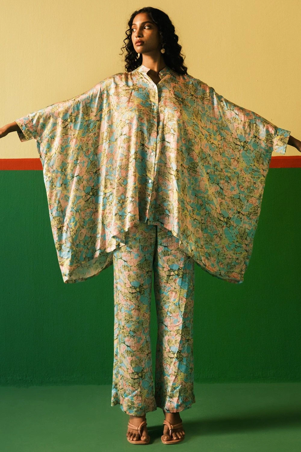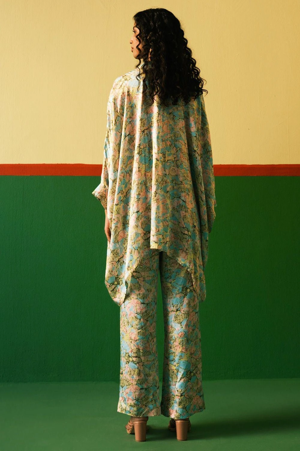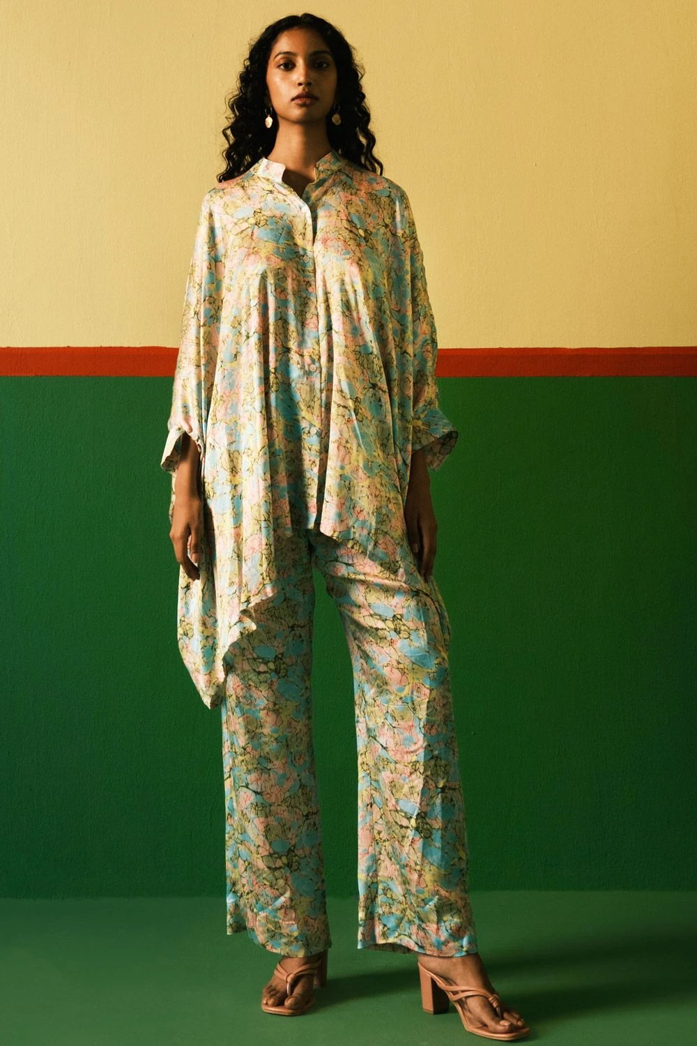 These atlas trousers are cut in vegan silk fabric with atlas print representing a world map. It features a straight tailored fit with side pockets, fetching a formal look. You can match it with an atlas shirt for a co-ord look.