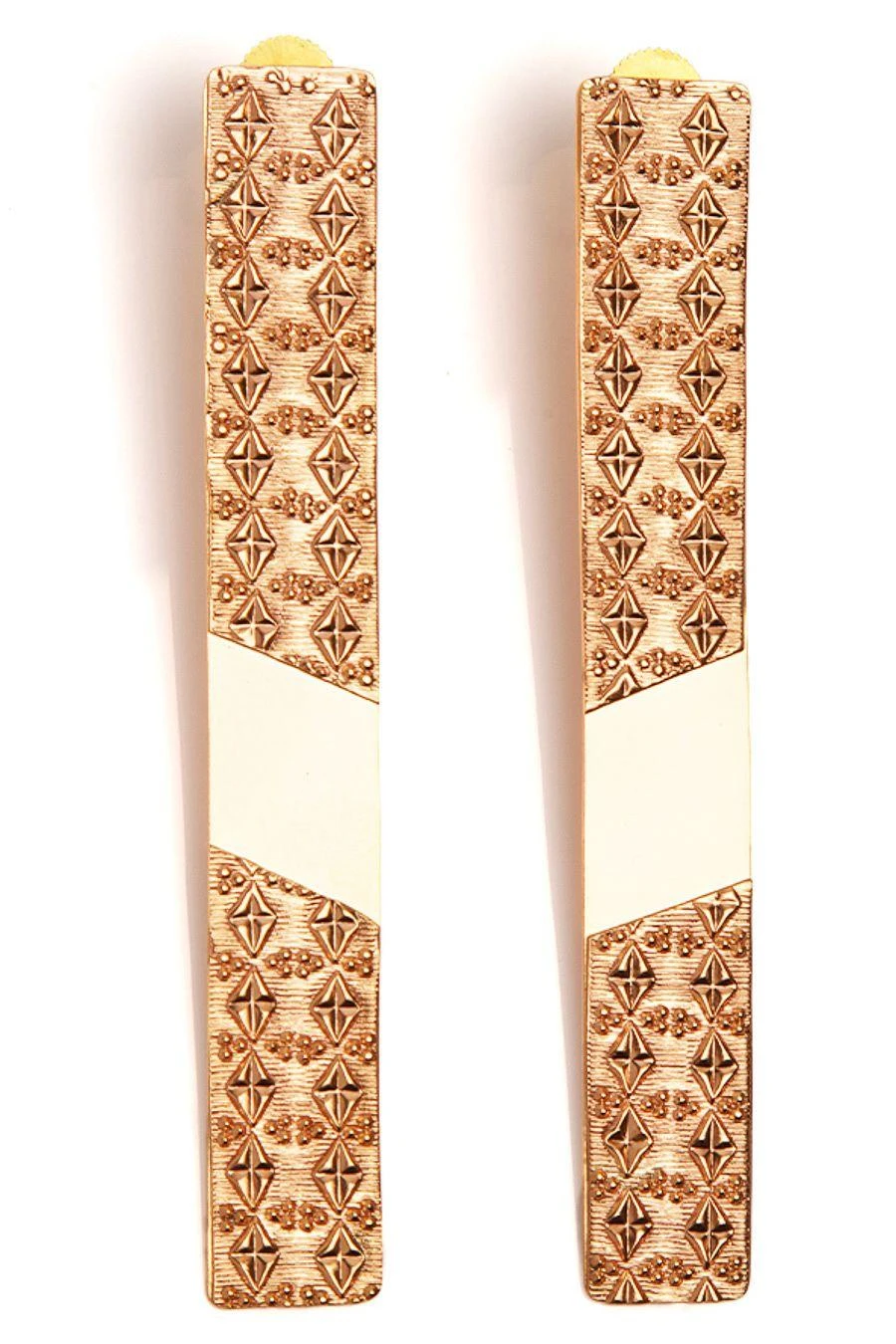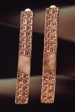 These scene-stealing earrings are an instant pick-me-up to any look. Crafted in 22K Gold Plated Copper, Swarovski, these Relics on sand linear earrings instantly spruce up your outfit. Pair them with a cocktail dress and pulled-back hair.