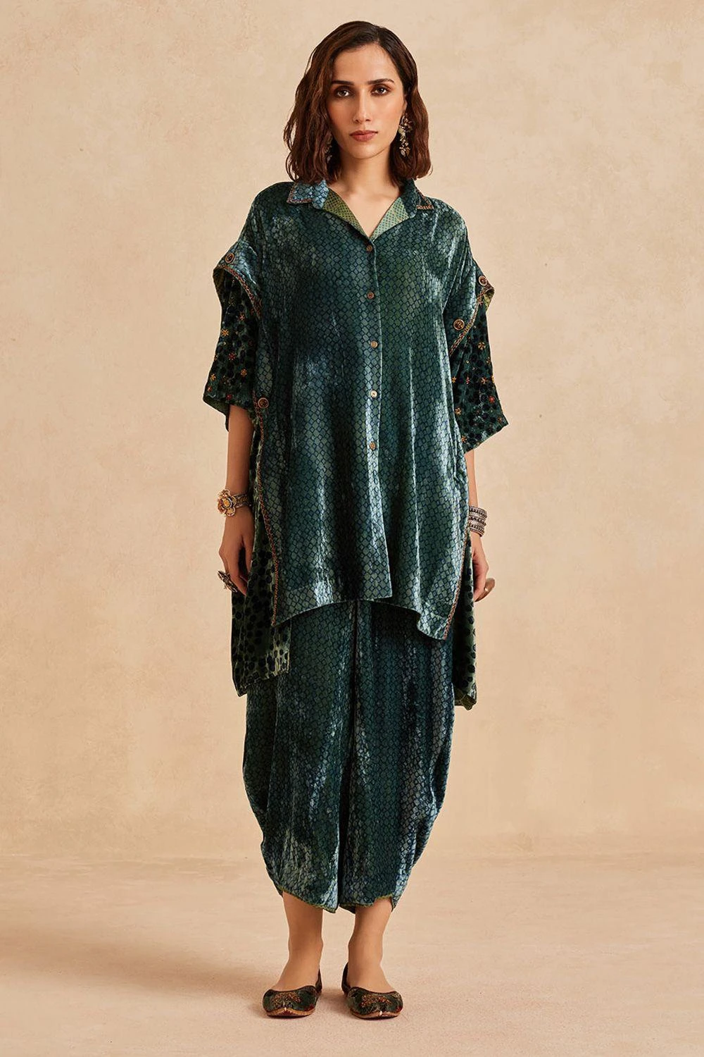 Material/Fabric : Velvet in hand-block Ajrakh print using natural dyes