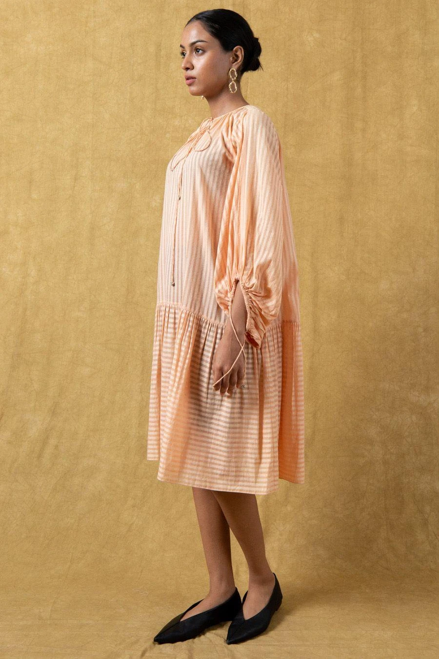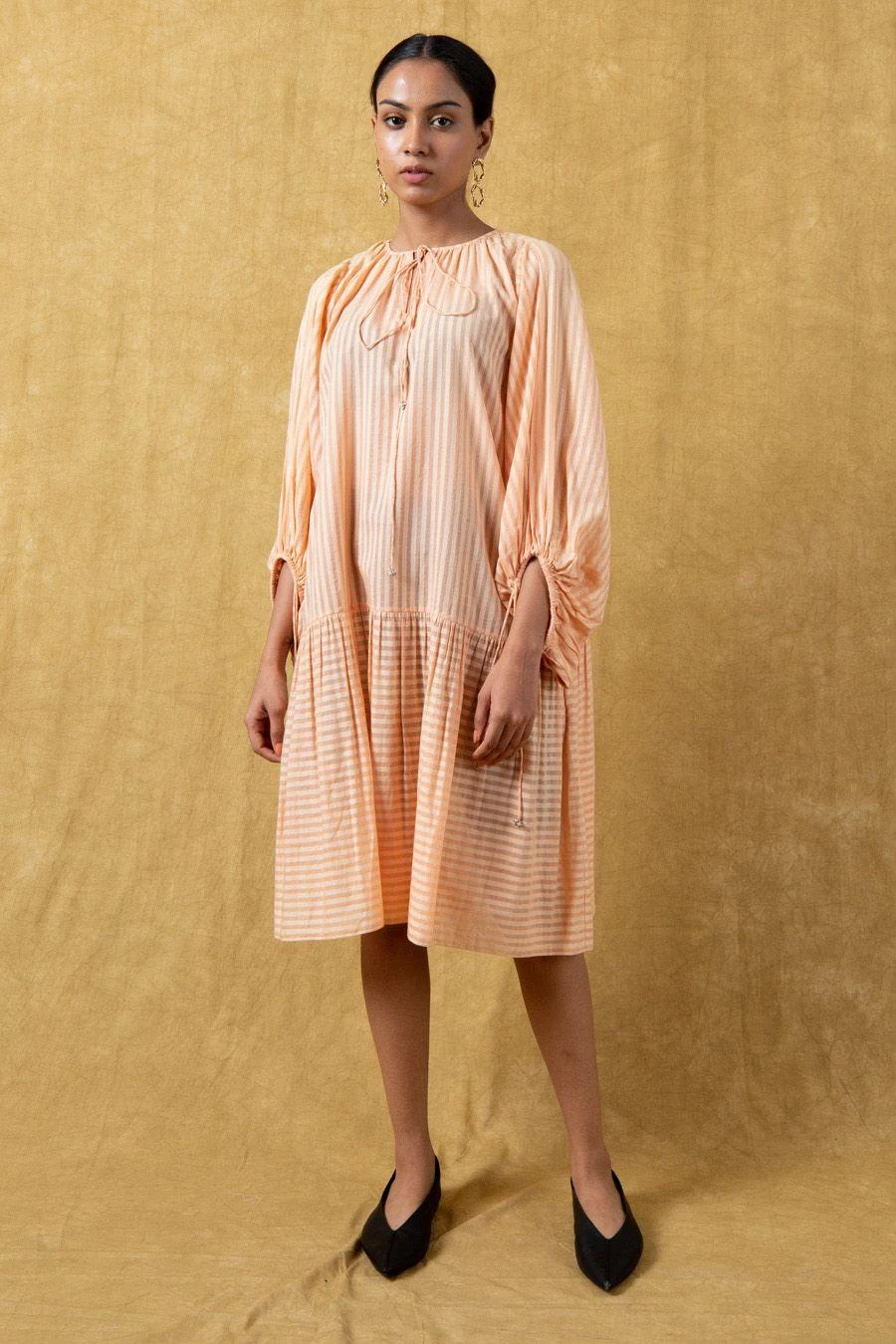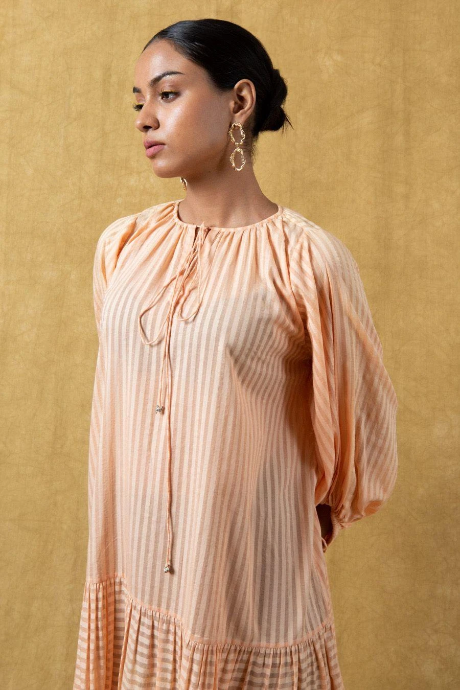 The perfect amalgamation of style and comfort, this mint green dress is perfect for the day out. Crafted in cotton, this tiered round neck dress features a striped detail all over.