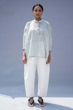 These voluminous relaxed pants are crafted in 100% hand woven yarn-dyed mulberry silk in an elegant ivory palette. It is tailored with side pockets. Pair it with a printed shirt or top to complete the look.