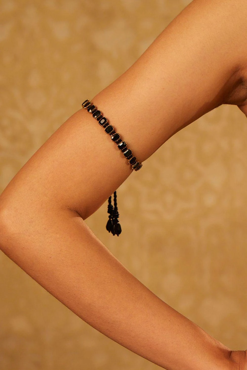 Whether you need to give your lehenga an upgrade or spruce up a reception gown with dramatic jewellery, this stone crystal bajuband is an out-of-the-box solution. This multifunctional piece can also be used as a choker.