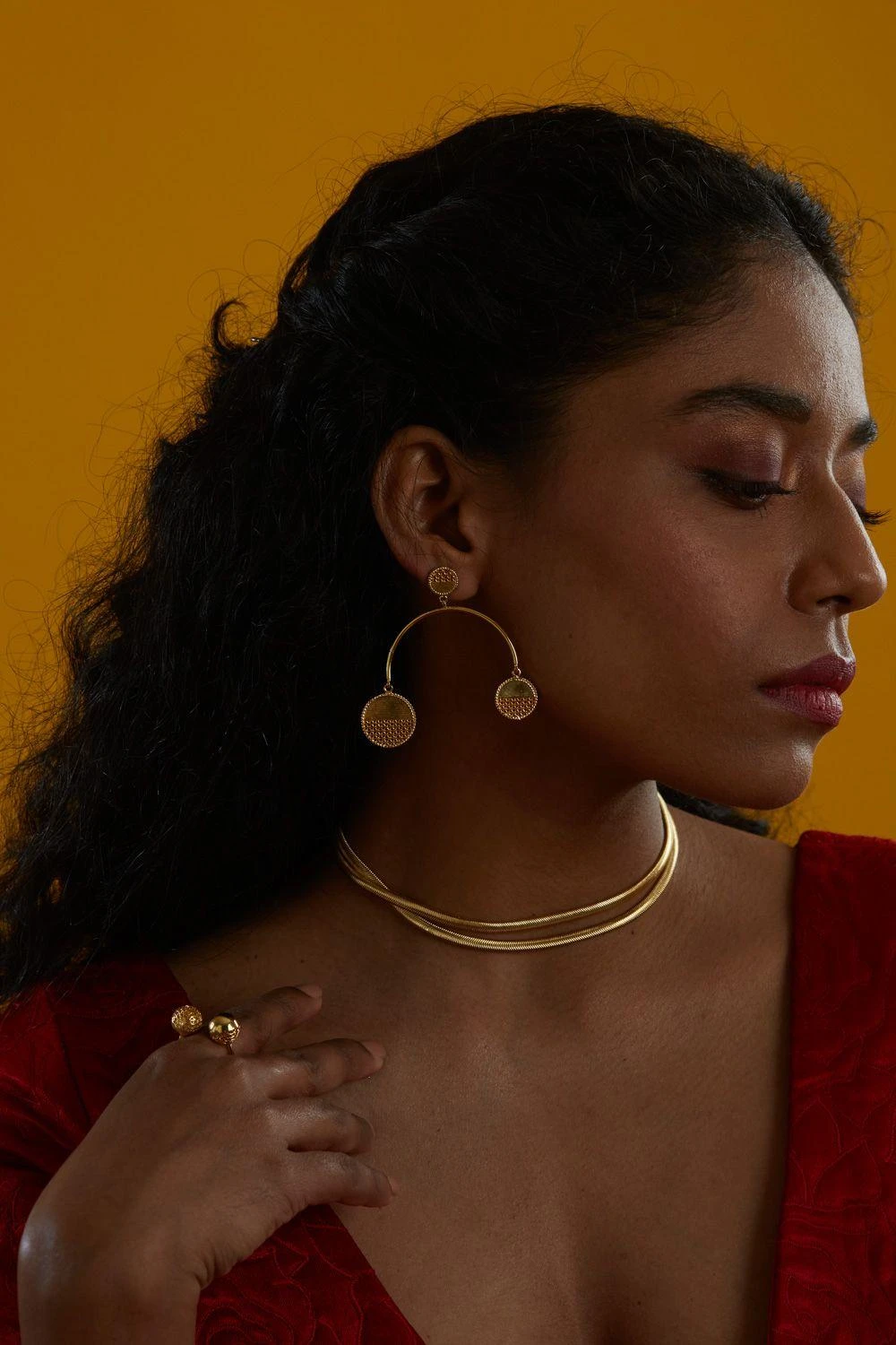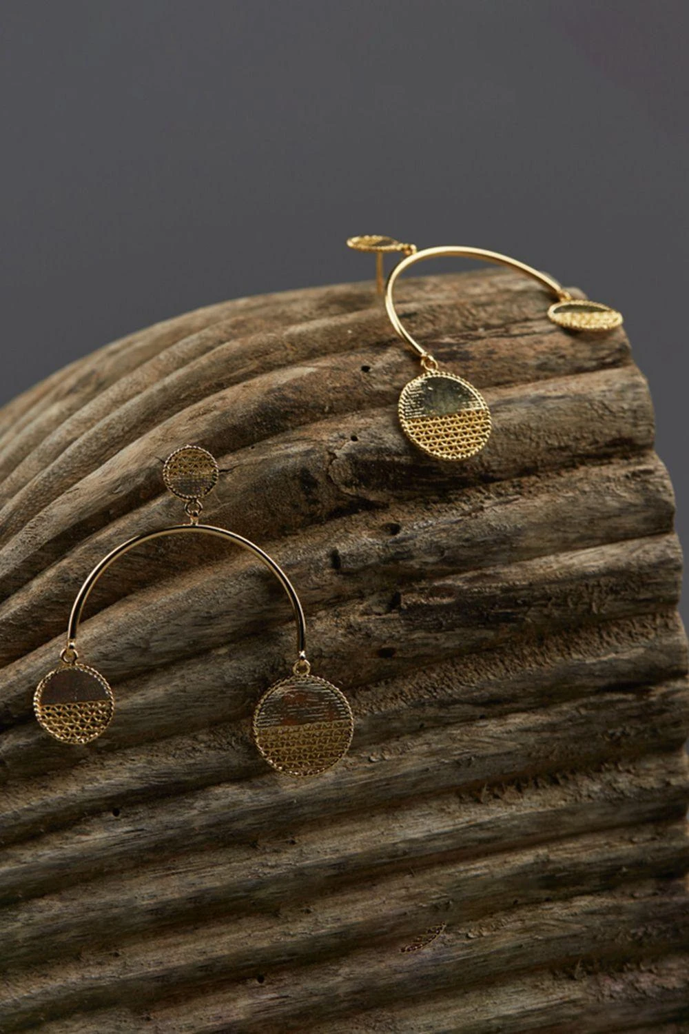 Material/Fabric : Reclaimed brass body with 92.5 silver earposts. Plated with 22K gold.