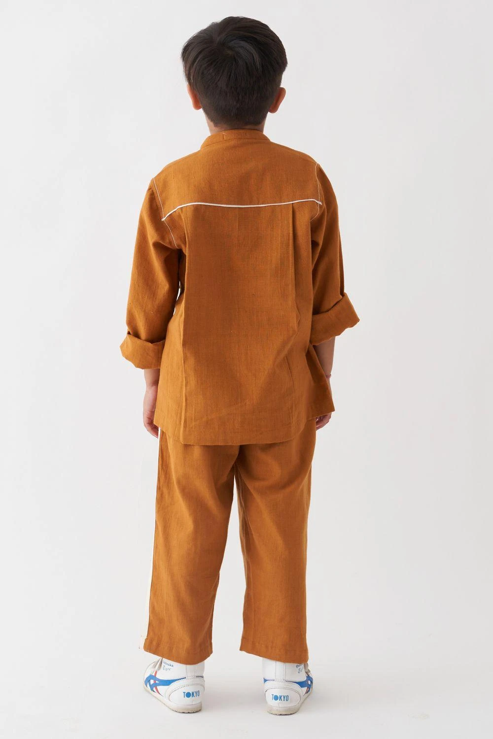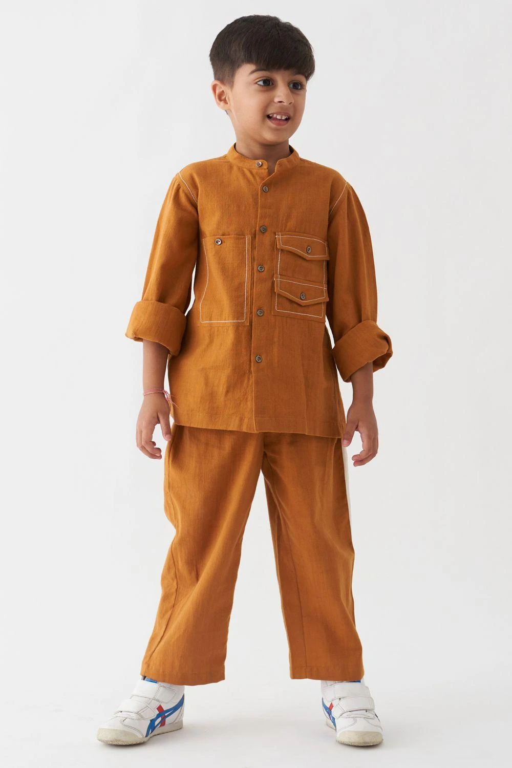 Let your little one’s style soar with this co-ord set. The rich rust hue adds a touch of warmth, while the patch pocket detailing enhances its charm. Dress your little one in this fashion-forward set for a timeless and polished look.