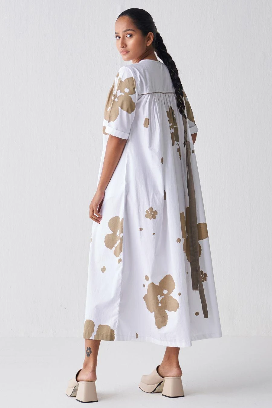 From your work desk to the brunch table & from lounging at home to catching flights, you can always count on this dress. Crafted in poplin, this sleeveless dress features sage floral motifs with a front twill tape closure.