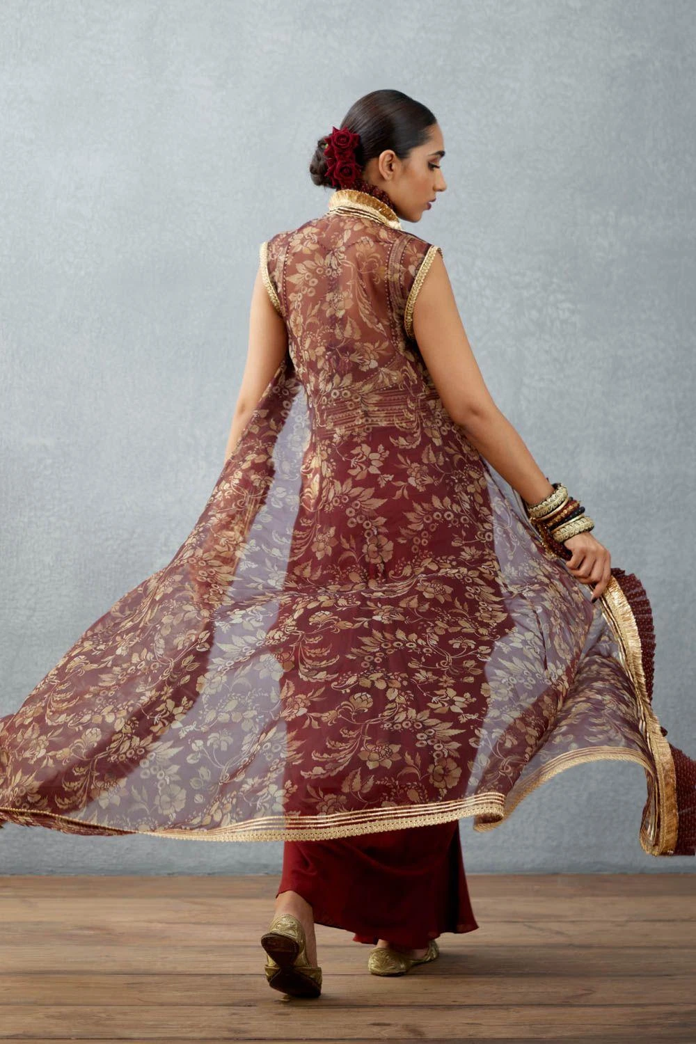 Swap your dupattas for capes this festive season. This set comes with a bhagalpuri printed cape paired with a bralette & dhoti pants. Style this set with a pair of polki earrings to complete the look.