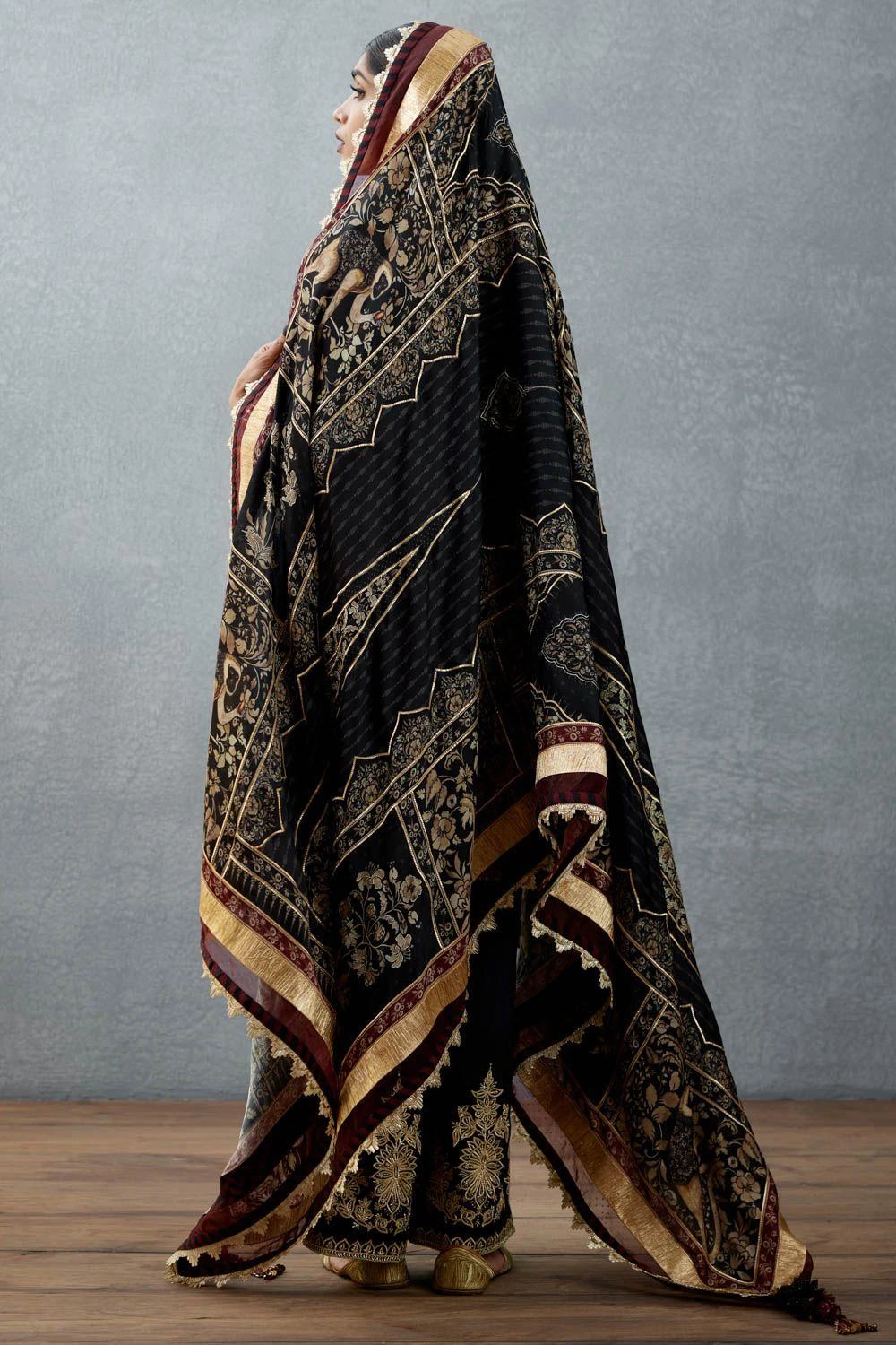 Embroidery : Digital Bhagalpuri Print + Gota Embroidery + Hand Adda Work with Gota