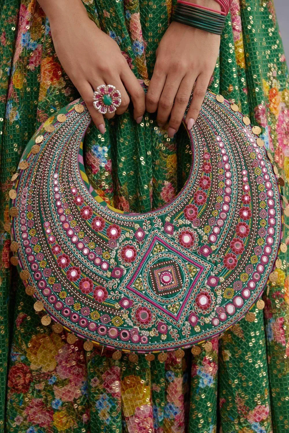 Elevate your looks instantly with this stunning panna lolita sheesham hobo bag. It is crafted in handwoven chanderi with cotton silk lining and adorned with heavy hand embroidery.