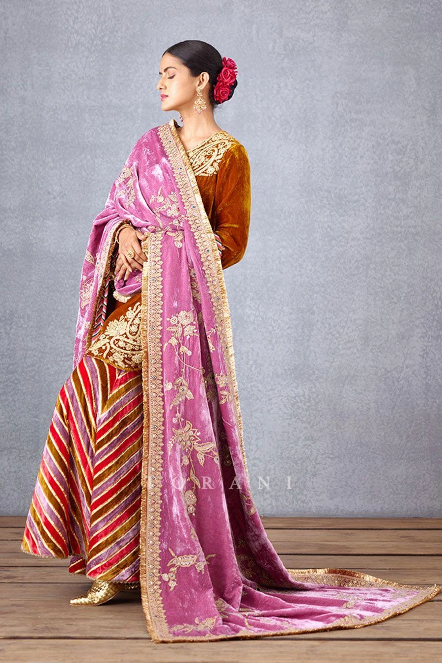 Take your layering game a notch higher with this doshala. Crafted in silk velvet, this dupatta features a floral print with zari and gota embroidered details.