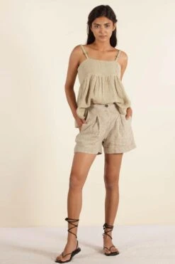 Discover the epitome of refined sophistication with these linen shorts. The meticulously crafted design and flattering silhouette exude effortless elegance, making them a versatile addition to your wardrobe.
