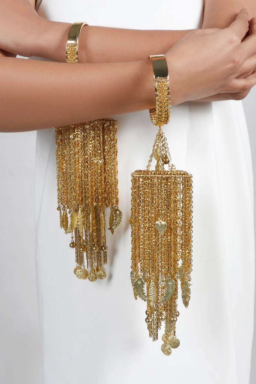 These delicately designed & thoughtfully hand crafted kaleera’s are for the lovely brides who are all about the details. These are made with brass chains, hand embroidered bangle and assembled with multiple strands of chains & metal beads.