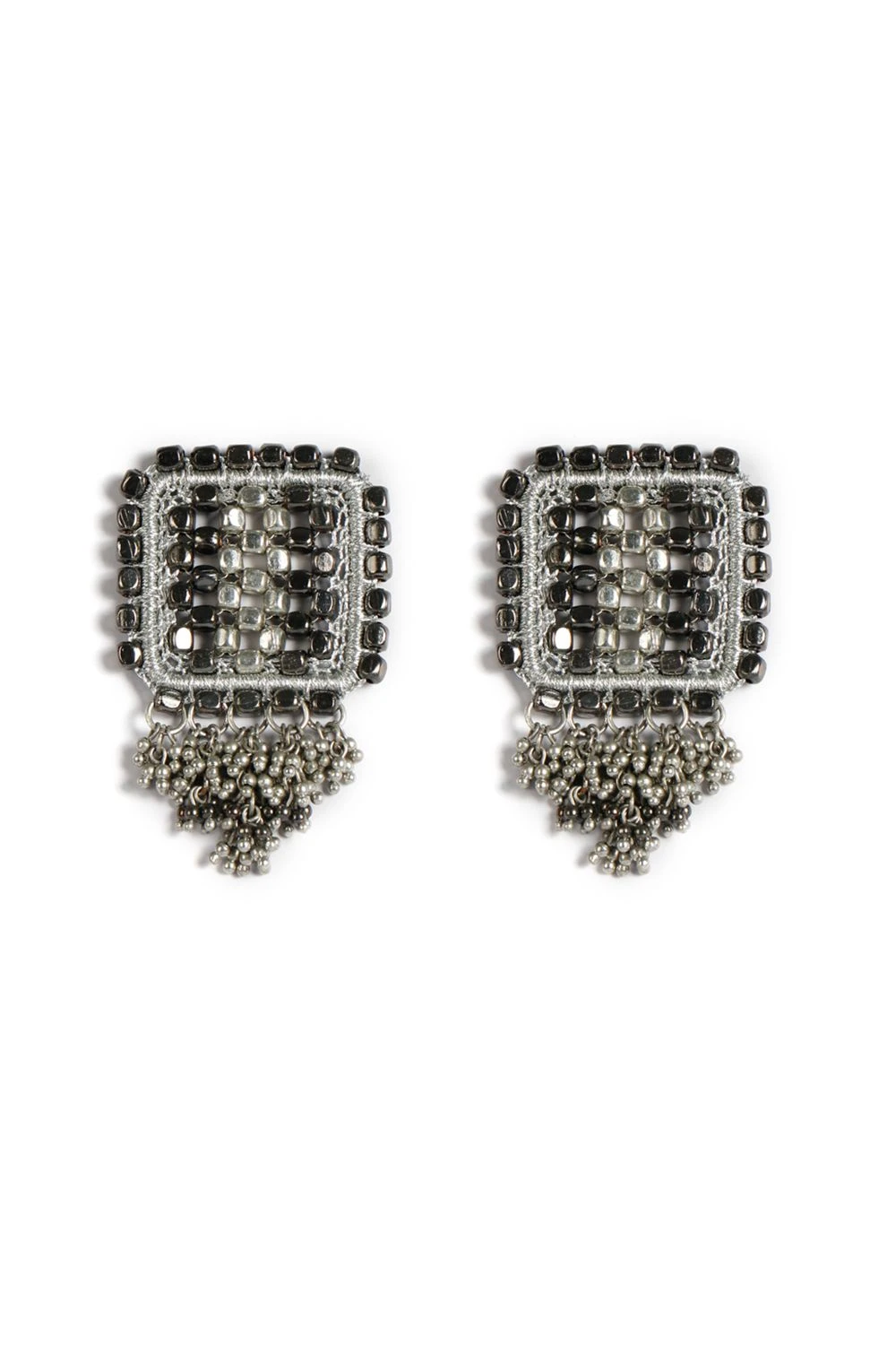 These square drop earrings are a performer. Their dazzling design blends grey and silver drops, amidst the dainty beads, to make themselves stand out.