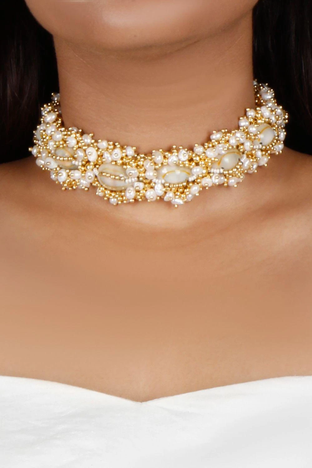 Material/Fabric : 22K Gold finish, shells, beads, brass metal, pearls, thread