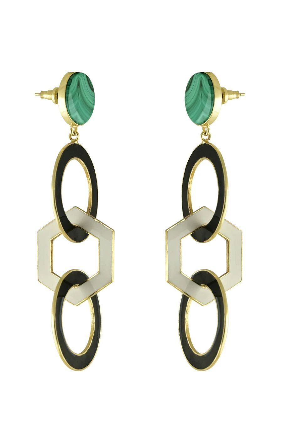 Material/Fabric : Malachite with Black, White Enamel & 22k gold plated with a specially customized metal alloy.