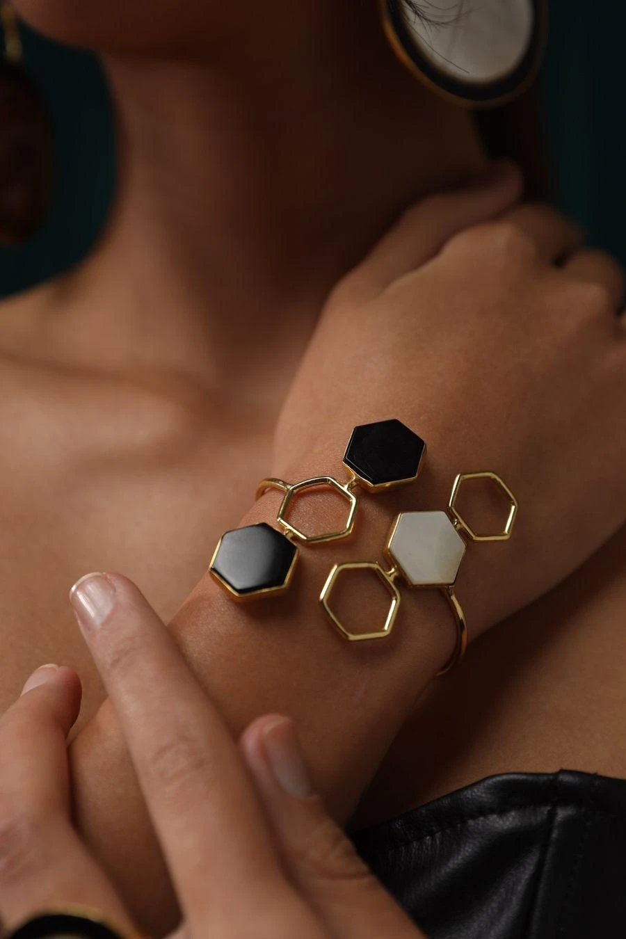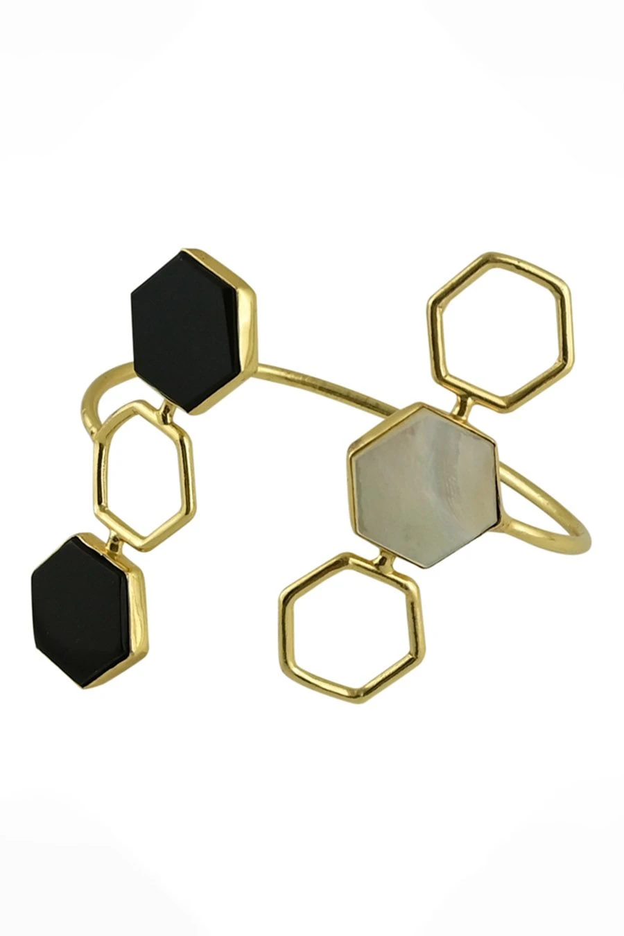 Material/Fabric : Black Onyx, White MOP & 22k gold plated with a specially customized metal alloy.