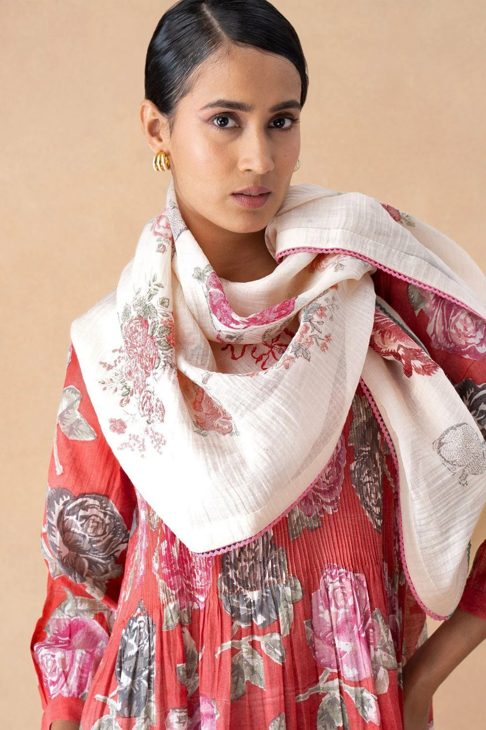 Indulge in chic simplicity with this timeless scarf. Effortlessly elegant, it’s a canvas of understated beauty, celebrating the allure of minimalism with refined style.