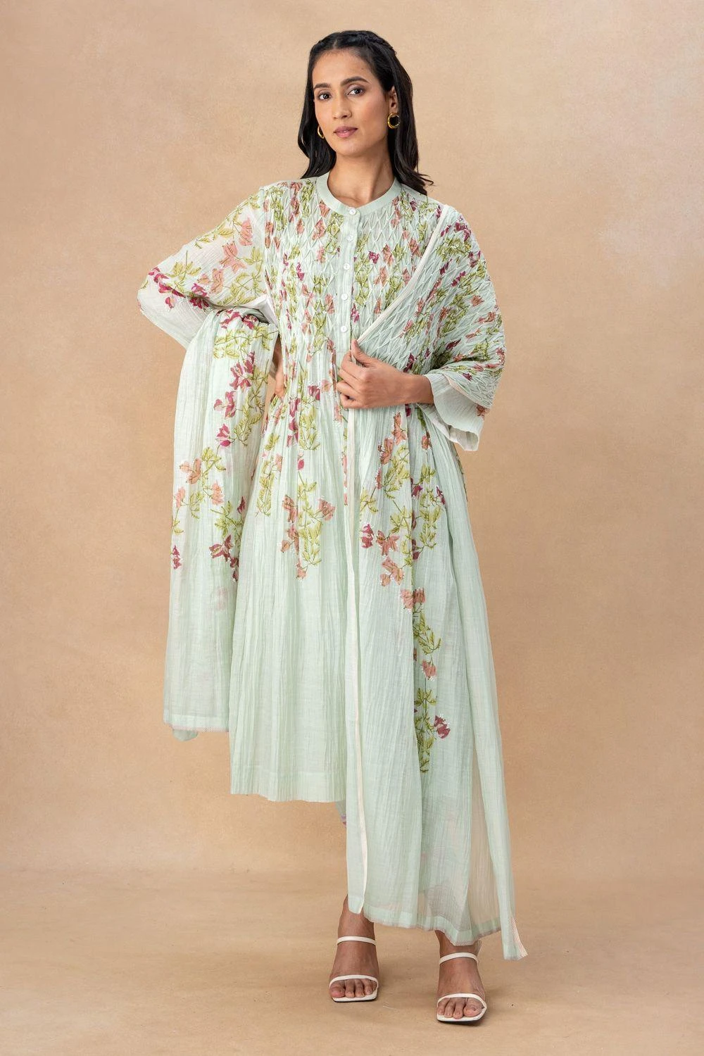 Adorn yourself with the opulent Lusia Bougainville Beaded Dupatta. Its delicate beadwork adds a touch of glamour to any ensemble, making you the epitome of sophistication.