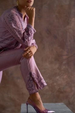 Sakshi Khetterpal Lavender-hued Chanderi Top-pant Co-ord Set