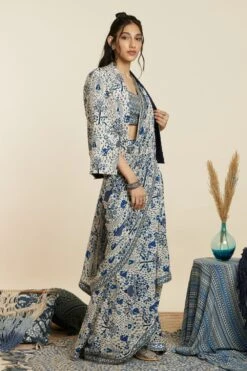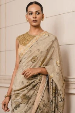 Tarun Tahiliani Black Hand Embellished Draped Concept Sari Set