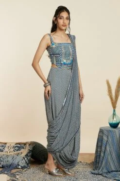 Tarun Tahiliani Black Embellished & Panelled Concept Sari Set