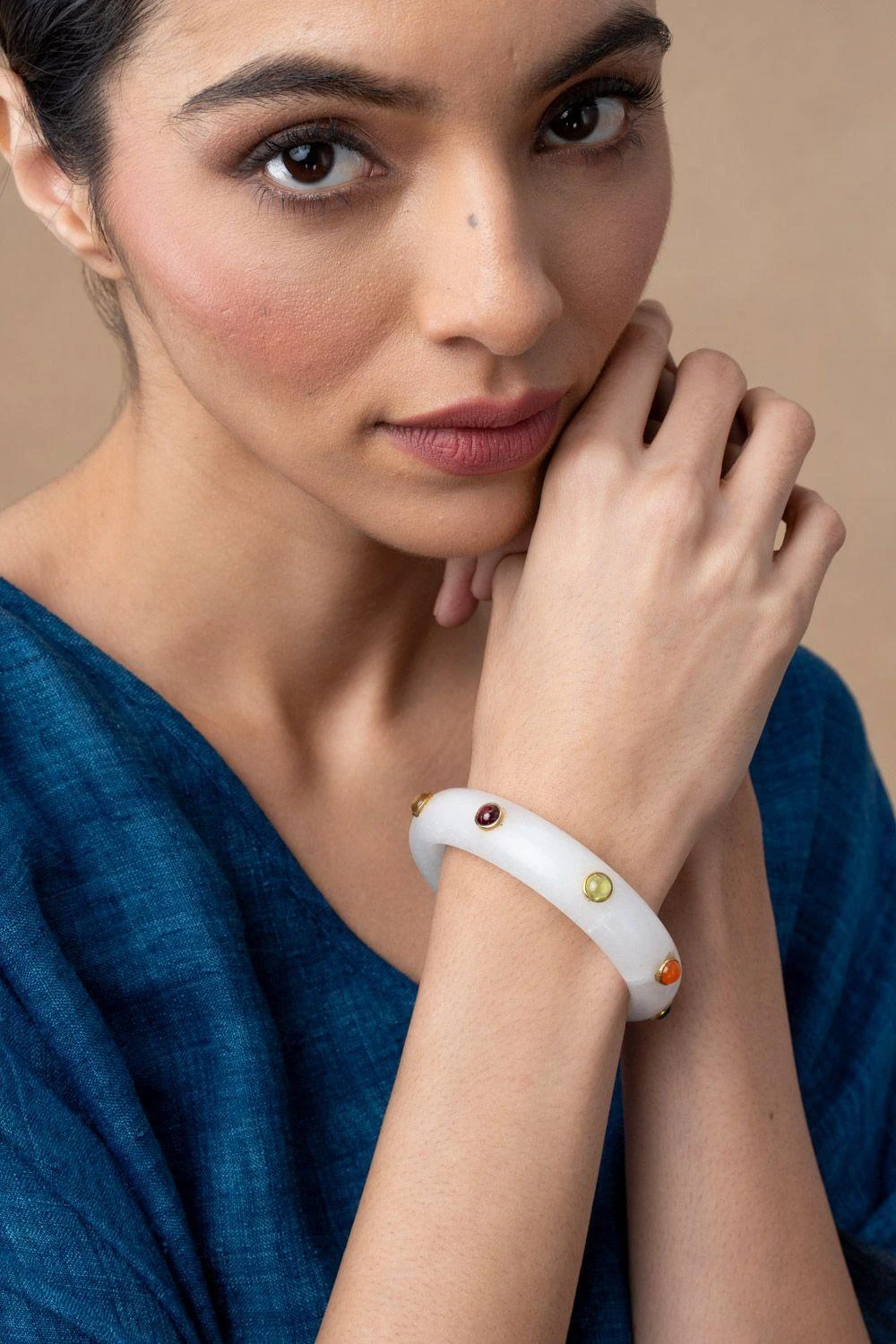 Indulge in luxury with our Hand-Carved Peach Onyx Bangle. The meticulous craftsmanship brings out the natural beauty of the peach onyx, creating a piece that exudes sophistication and grace. Elevate your accessory game with this elegant bangle.